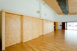 Für externe Nutzungen steht auch der Turn- und Bewegungsraum im zweiten Obergeschoss zur Verfügung, der ebenso bequem über Lift und Stiegenhaus erreichbar ist.